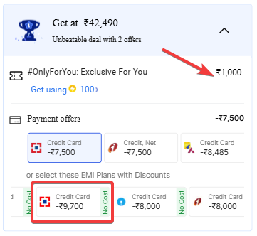 incl. ₹1500 off wih flipkart Axis Bank C C