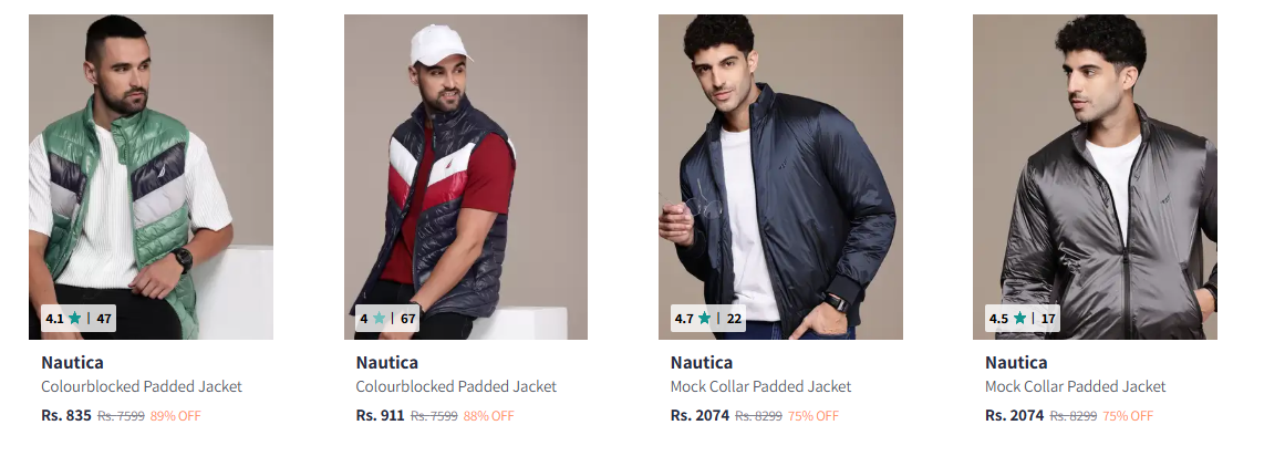 Nautica Men's Jackets upto 89% Discount is available on Myntra.