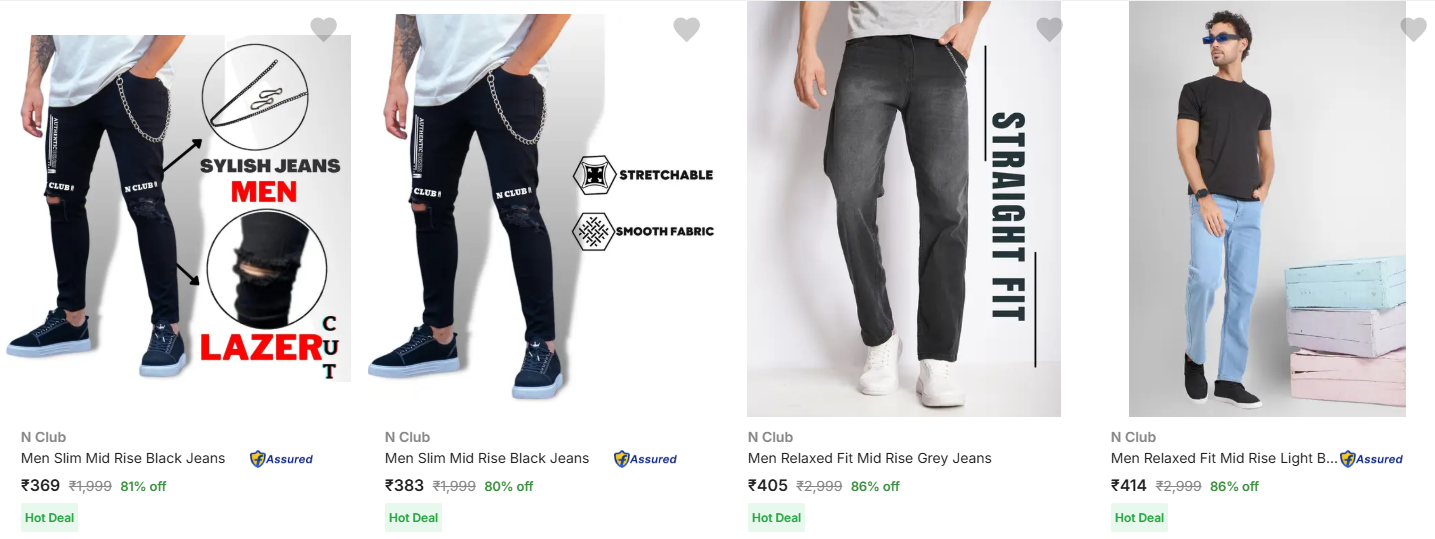N Club Men's Jeans upto 86% Discount is available on Flipkart.