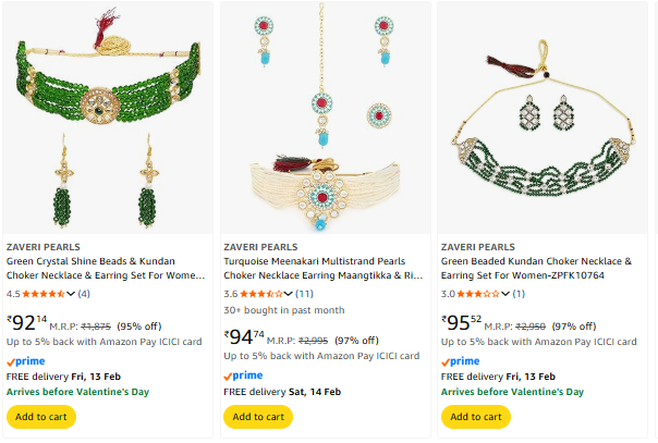 Necklace Starting @ ₹92 on Amazon.
