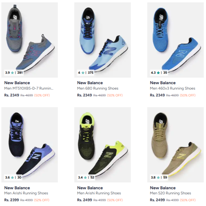 New Balance Shoes @ Minimum 50% Discount is available online in India (50% off) on Myntra.