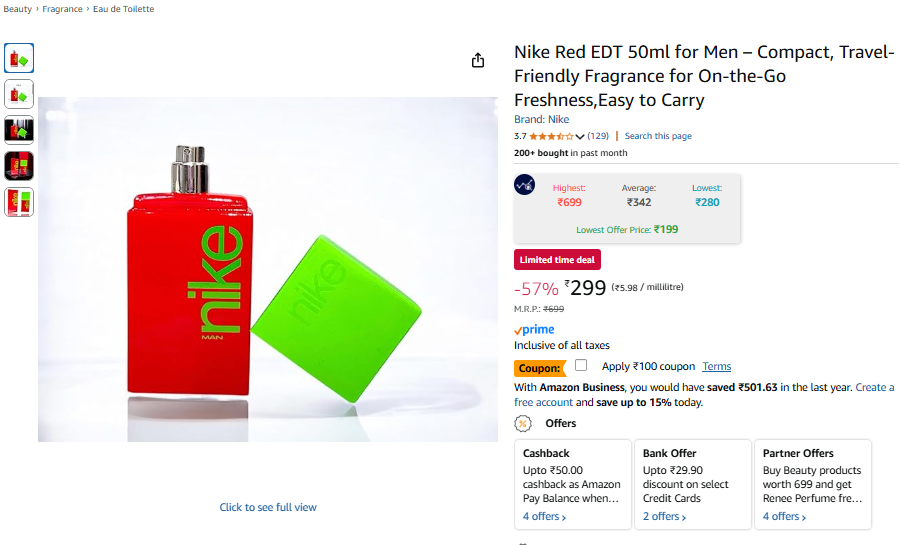 Nike Red EDT 50ml for Men—Compact, Travel-Friendly Fragrance for On-the-Go Freshness,Easy to Carry.