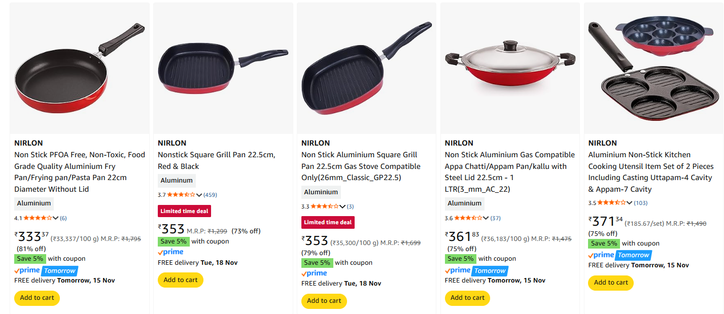 Nirlon Non-Stick Kitchen Accessories upto 81% Discount is available on Amazon.
