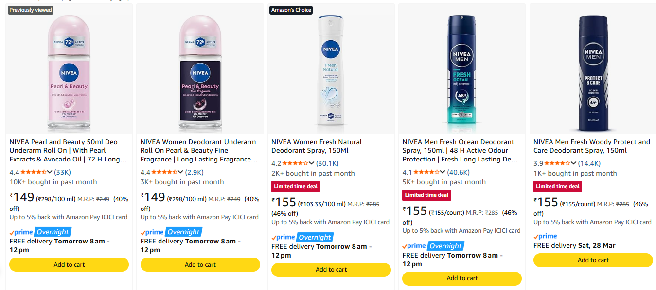 Nivea Deodrant at minimum 40% Discount is available on Amazon.