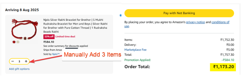 Njels Silver Rakhi : Get 3 for the price of 2 On Amazon