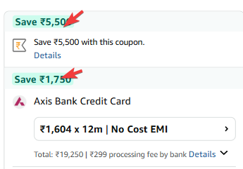 Incl. ₹1750 Discount Axis Bank CC+₹ 5500 Coupon