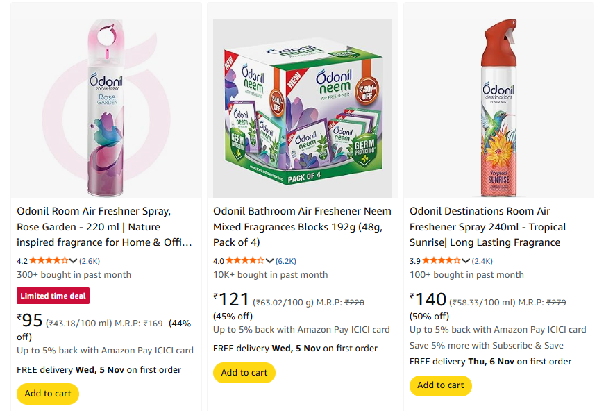 Odonil Air Freshener upto 50% Discount | Starting at ₹95 is available on Amazon.