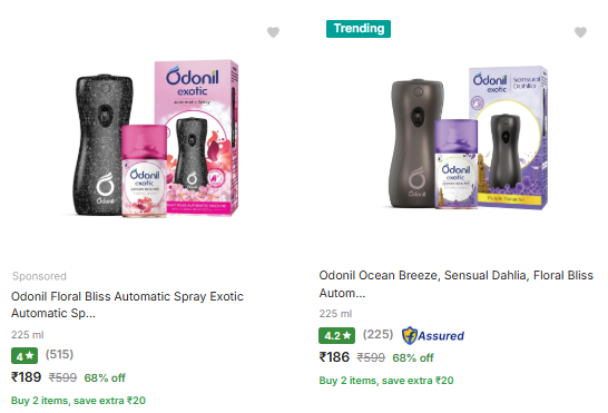 Odonil Ocean Breeze, Sensual Dahlia, Floral Bliss Automatic Spray Exotic Automatic Spray 225ml | Machine + 1 Refill | Sensual Dahlia | 2200 Sprays (225 ml)