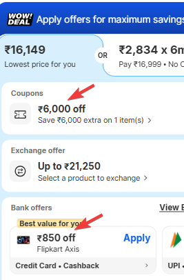 Apply ₹6000 Coupon+ Extra Bank Offer Available