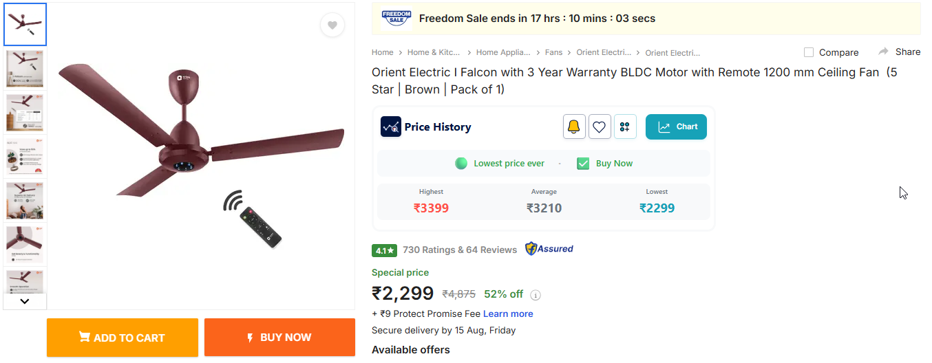 Orient Electric I Falcon with 3 Year Warranty BLDC Motor with Remote 1200 mm Ceiling Fan (5 Star | Brown | Pack of 1).