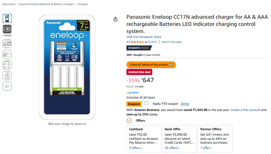 Panasonic Eneloop CC17N advanced charger for AA & AAA rechargeable Batteries LED indicator charging control system..
