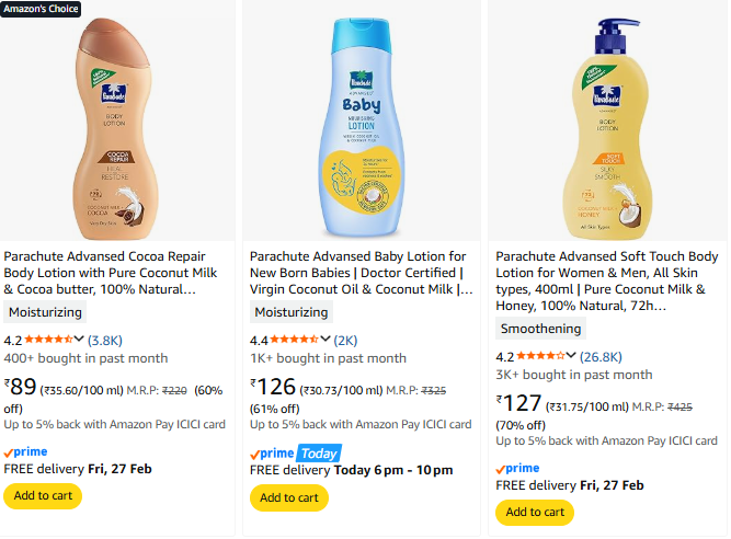 Parachute Advansed Beauty Products Upto 70% Discount on amazon.