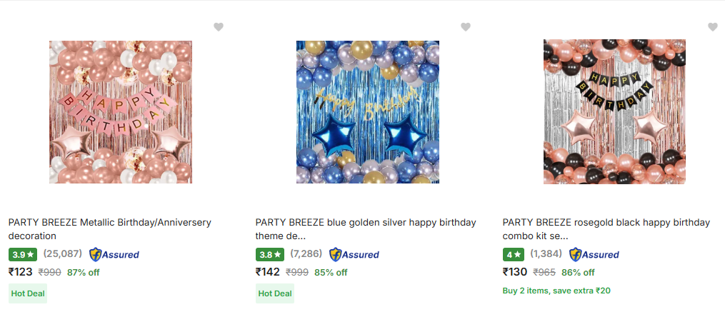 Party Breeze Birthday Decorations Combos Starting @ ₹123 on Flipkart.