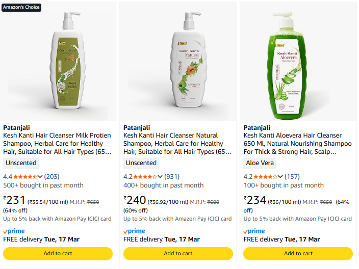 Patanjali Kesh Kanti Hair Cleanser Upto 64% off on Amazon.
