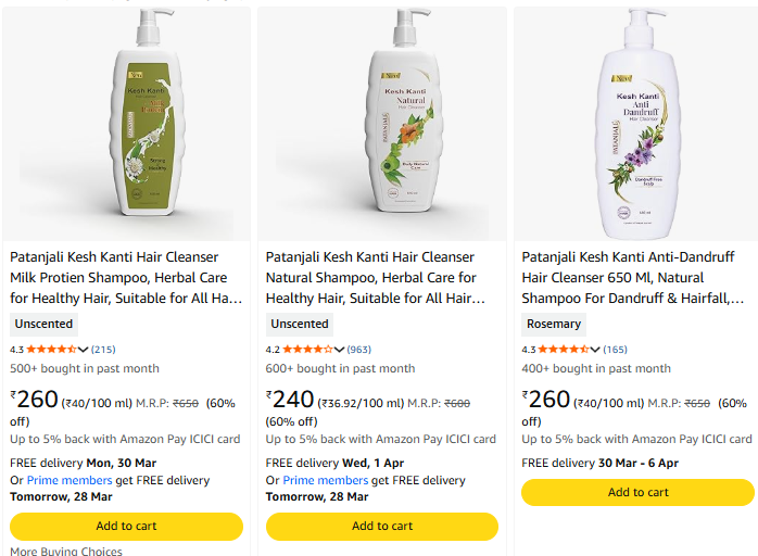 Patanjali Shampoo @ Flat 60% Discount, Available on Amazon.