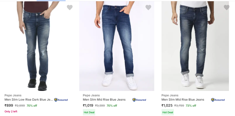 Pepe Jeans Jeans @ Minimum 70% Discount available online in India (70% discount from MRP) on Flipkart. Discount: 70%. This deal was updated by @suresh on 29th March, 2026 at 2:36 AM.