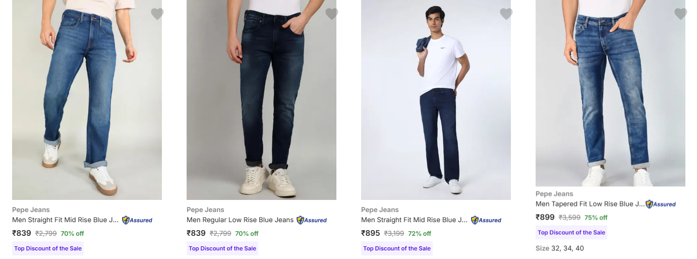 Pepe Jeans Men's Jeans at minimum 70% Discount is available on Flipkart.