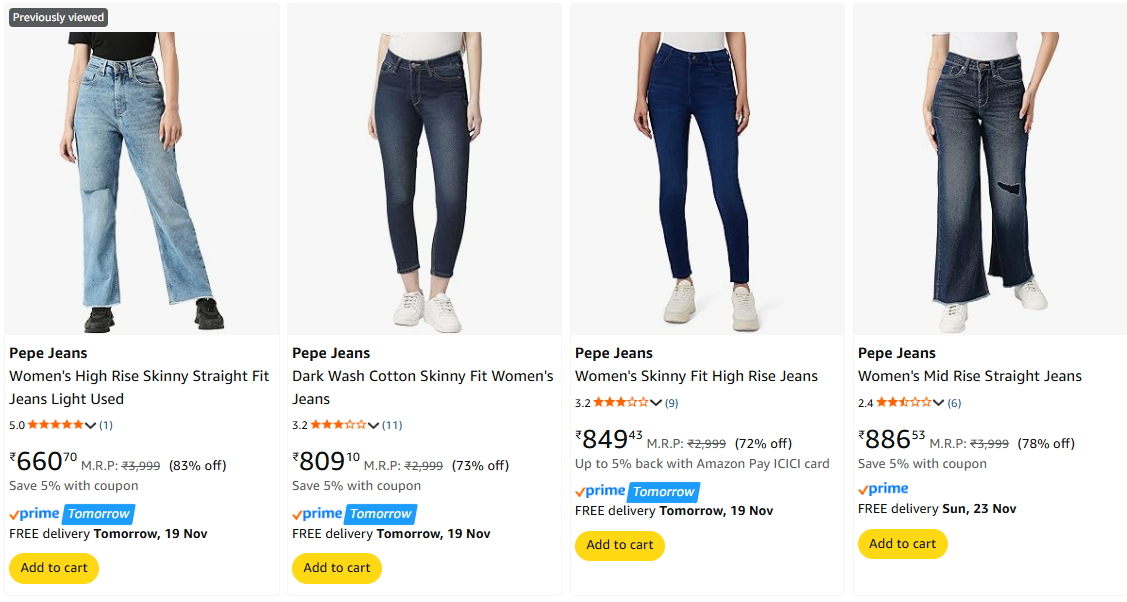 Pepe Jeans Women's Jeans upto 83% Discount is available on Amazon.