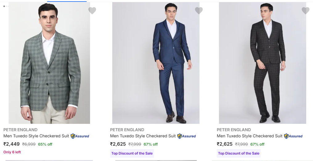 Peter England Tuxedo-Style Suit upto 67% Discount Available on Flipkart