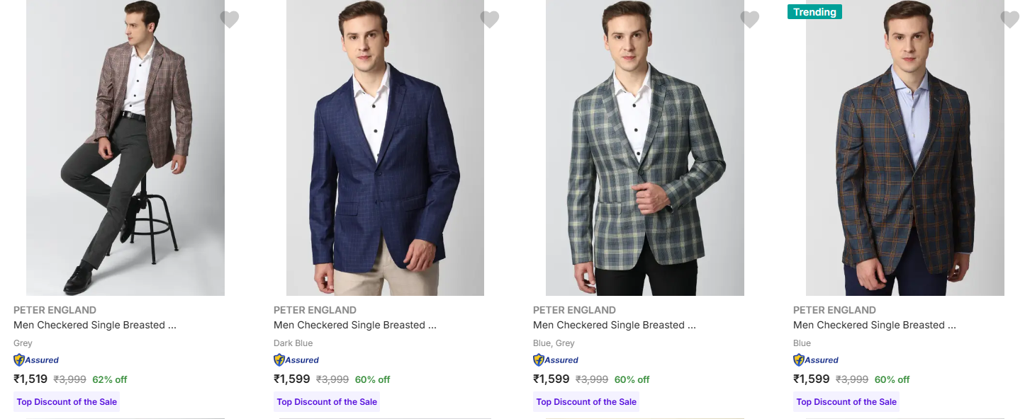 Peter England Men's Readymade Blazers upto 62% Discount is available on Flipkart.