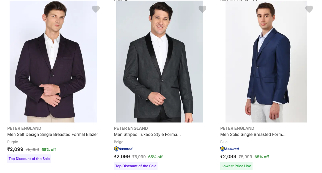 Peter England Men's Readymade Blazers upto 65% Discount available online in India on Flipkart. This deal was updated by @radhika on 05th October, 2025 at 2:48 PM.