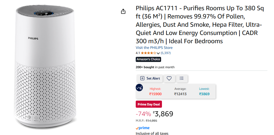 Honeywell Air Purifier for Home & Office, 3-in-1, Pre, H13 HEPA, Activated Carbon, Removes 99.99% Pollutants, Allergens, Pet Danger, Smoke, Dust & Pollens - Air touch V1
