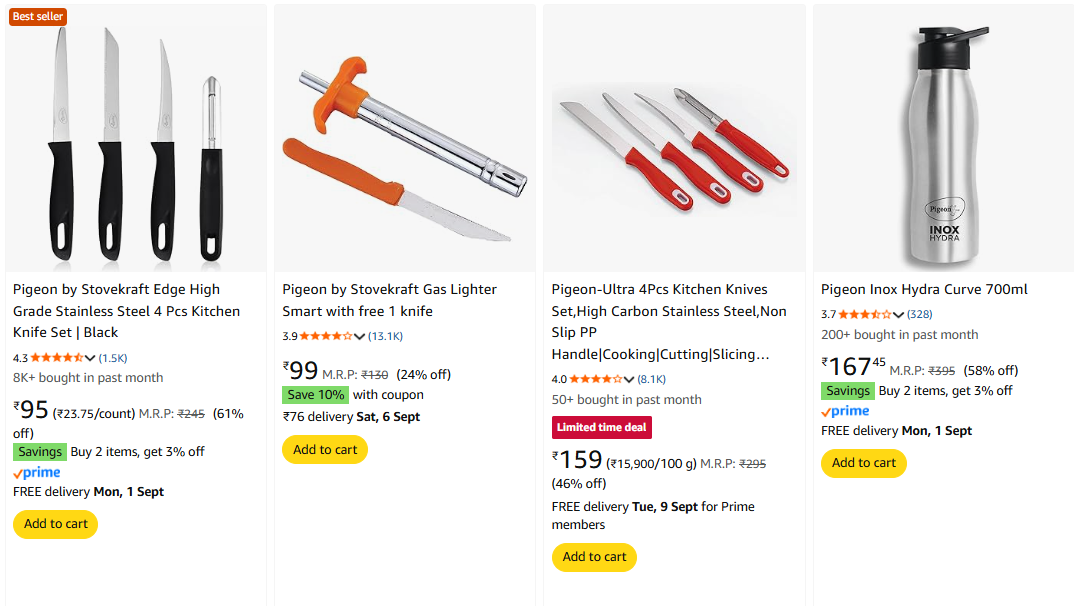 Pigeon Home & Kitchen Products Starting @ ₹95 on Amazon.
