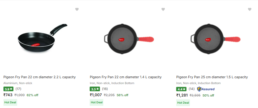 Pigeon Pans @ Up to 62% Discount, Available on Flipkart.