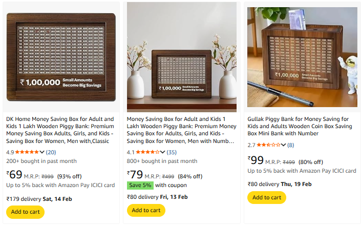 Piggy Bank @ Starting ₹69, Available on Amazon.