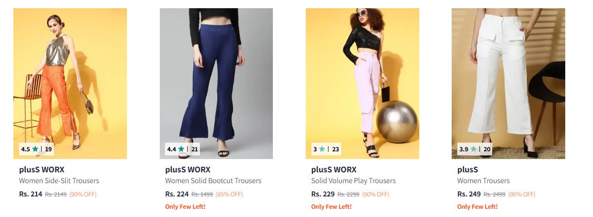 Pluss Women's Trousers upto 90% Discount is available on Myntra.