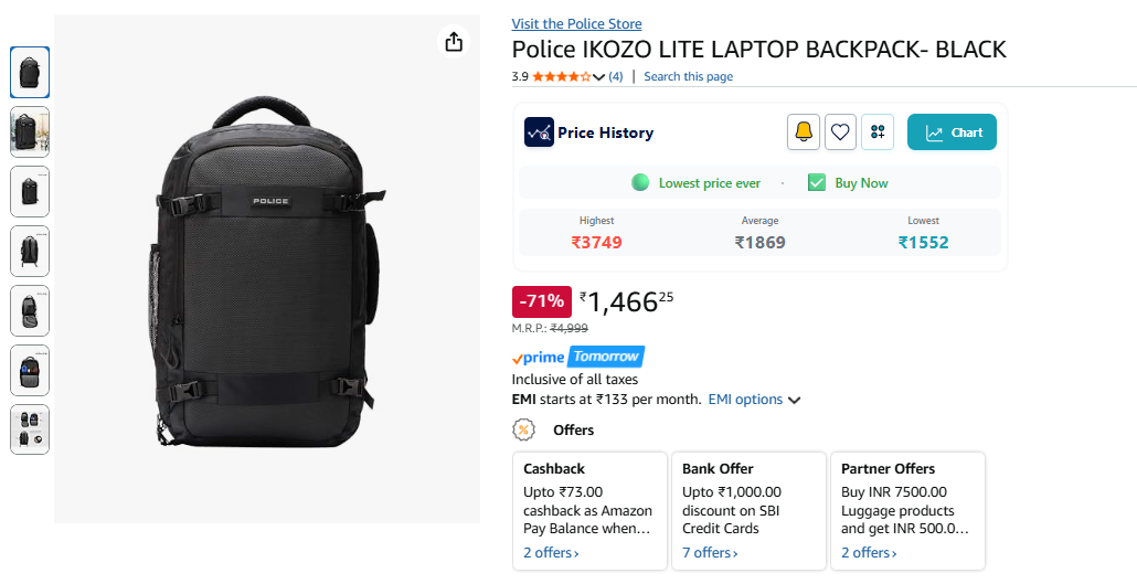Police IKOZO LITE LAPTOP BACKPACK- BLACK.