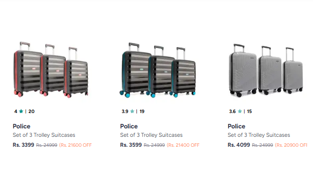 Police Trolley Bag Set of 3 Starting @ ₹3399 on Myntra.