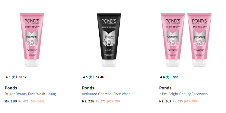Pond's Beauty and Personal Care @ Minimum 60% Discount, Available on Myntra.