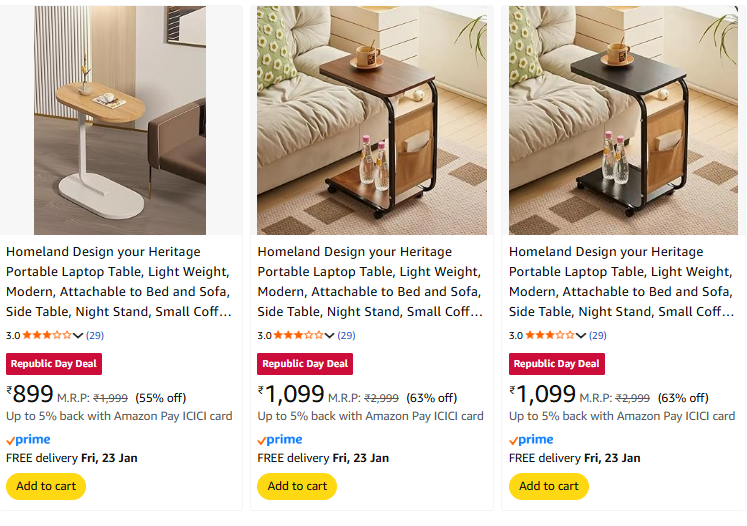 Portable Laptop Table @ Starting ₹899, Available on Amazon.