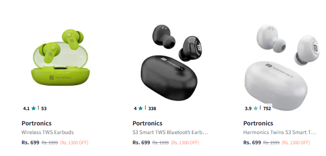 Portronics Harmonics Twins S5 Smart TWS Earbuds with LED Display Bluetooth Gaming (White, In the Ear)