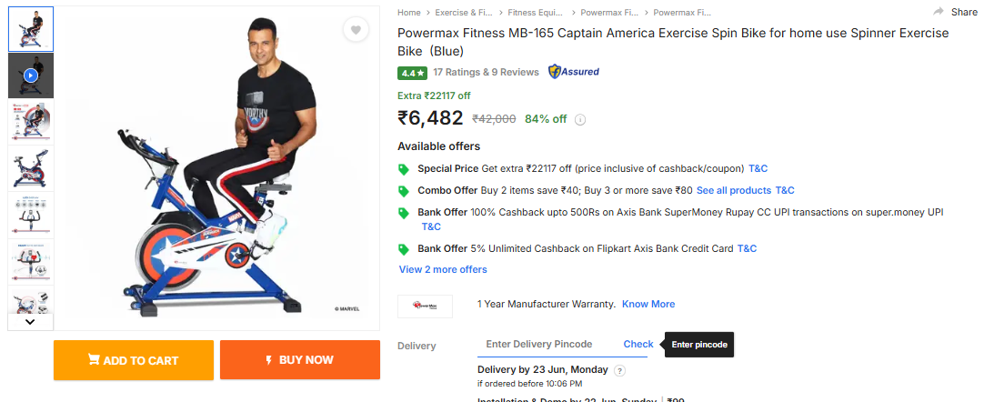 Powermax Fitness MB-165 Captain America Exercise Spin Bike for home use Spinner Exercise Bike (Blue).