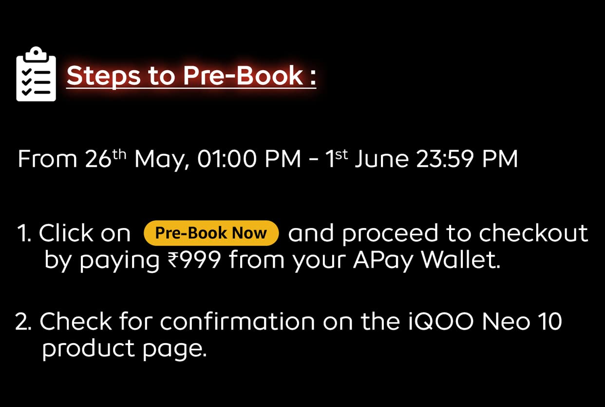 iQOO Neo 10 Pre booking sale : Free iQOO TWS Earbuds Worth ₹2099