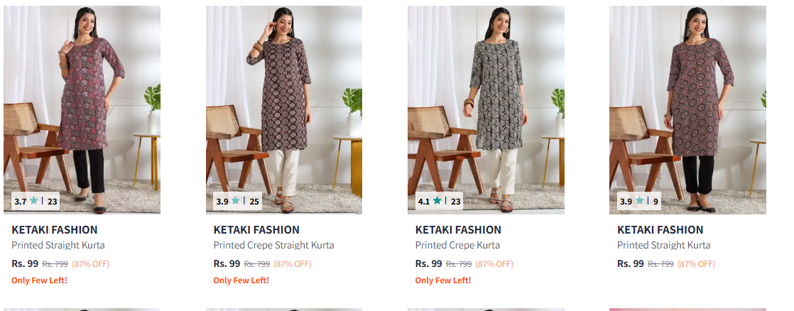 Premium Women's Kurta at ₹99 is available @ Myntra