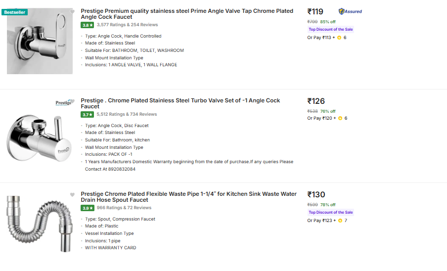 Prestige Passion Chrome Plated Wash Basin Sink Cock Crutch Faucet (Wall Mount Installation Type)