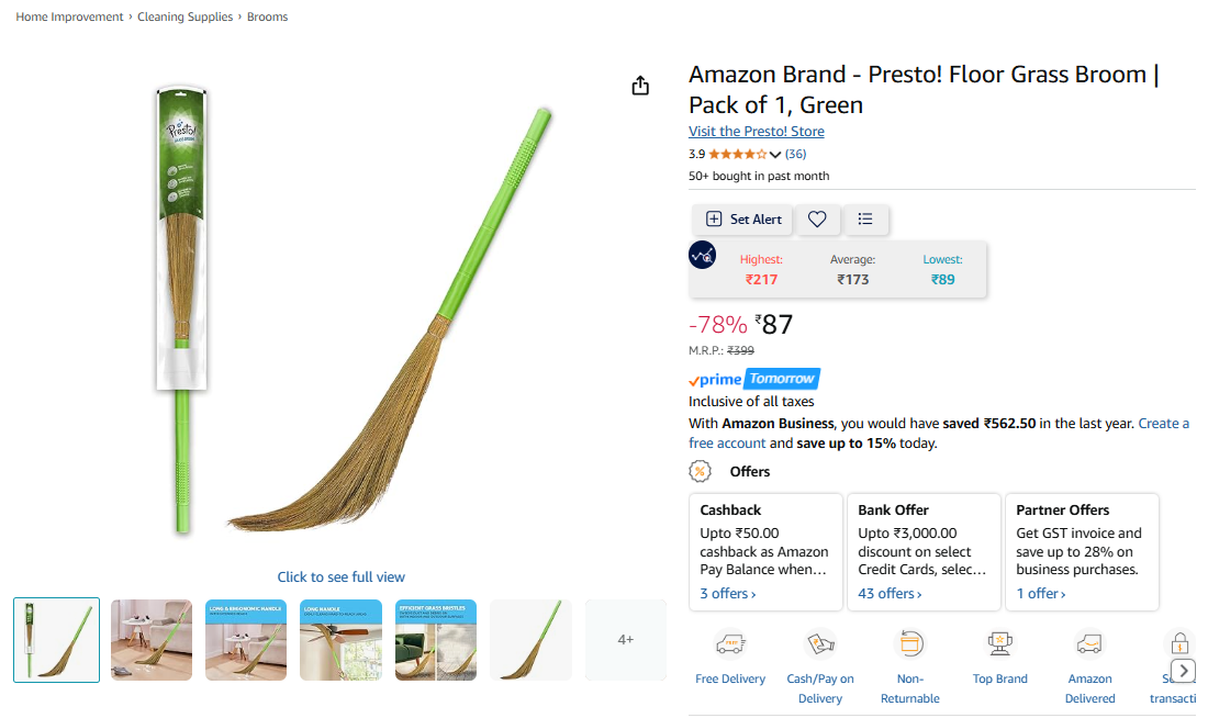 Amazon Brand - Presto! Floor Grass Broom | Pack of 1, Green.