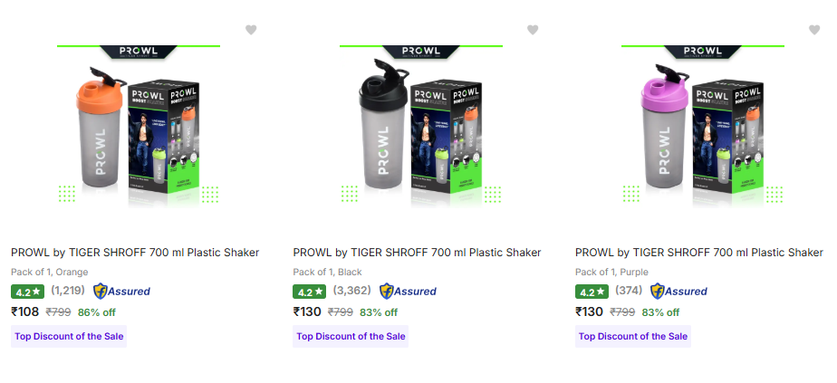Prowl Shakers And Sippers Upto 86% Discount | Starting @ ₹108 on Flipkart.
