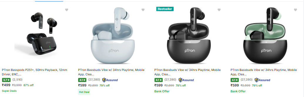 PTron Bassbuds upto 79% discount