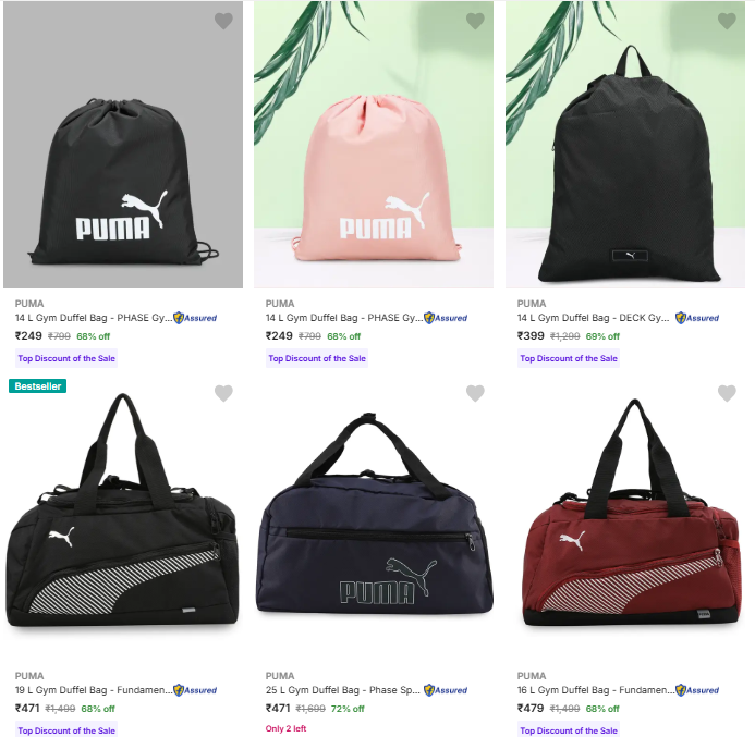 Puma Gym Duffel Bags Starting @ ₹249 on Flipkart.