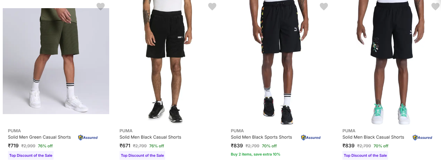 Puma Men's Shorts at minimum 70% Discount is available on Flipkart.