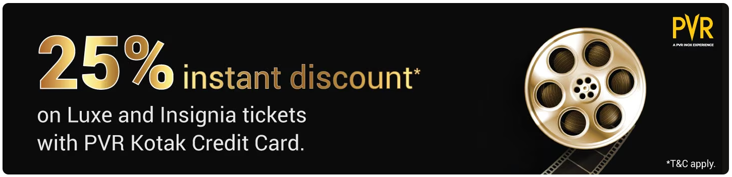 PVR INOX Cinema is running an offer where you will get 25% instant discount on Lux & Insignia tickets with PVR Kotak Credit Card.
