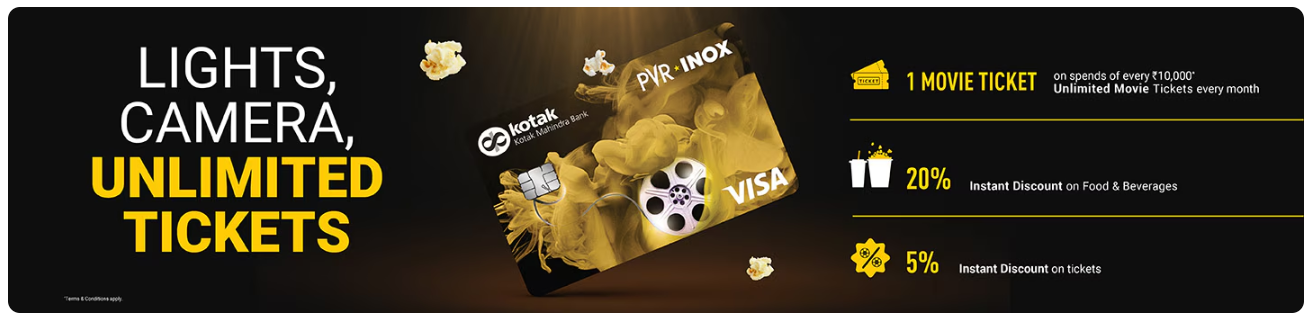 PVR Cinema is running offer where you will get 20% off on Food & Beverages Kotak PVR INOX Credit Card.
