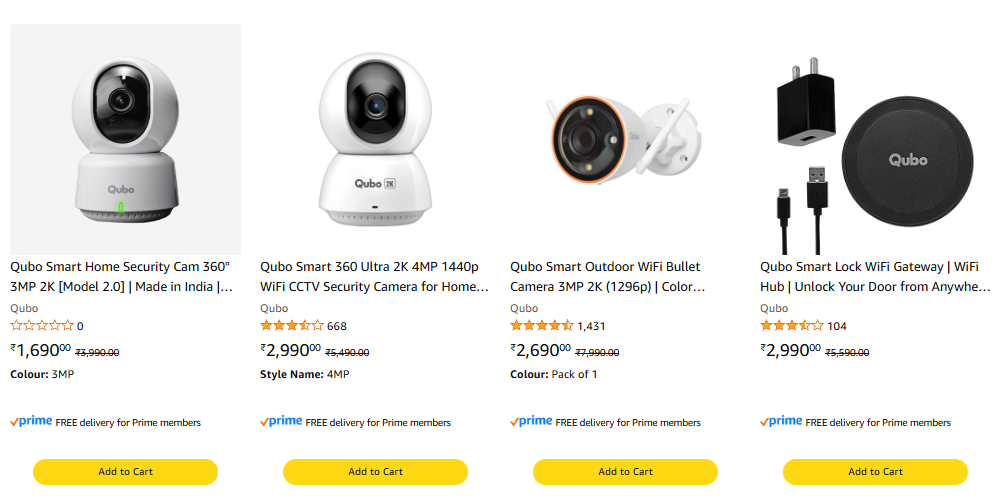 Qubo Smart Home Security Cam 360° 3MP 2K [Model 2.0] | Made in India | STQC Approved | Wi-Fi CCTV Camera | NightPulse Vision | Dual-Way Audio | SD Card & Cloud Storage | Alexa & OK Google.