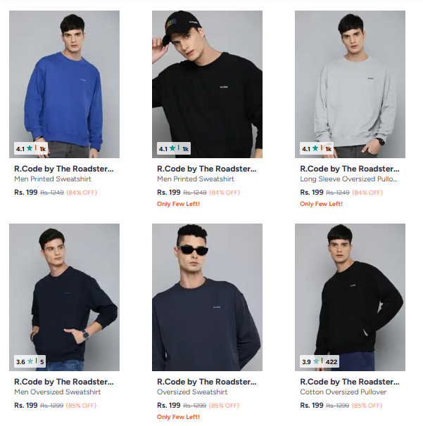 R.Code by The Roadster Life Co. Men's Sweatshirts Starting at ₹199