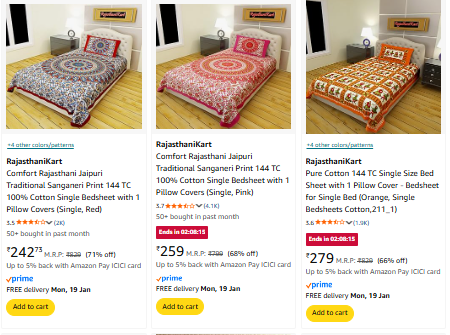 RajasthaniKart Bedsheet starting @ ₹242