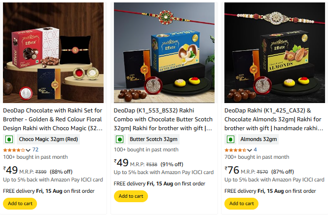 Rakhi Combo With Chocolate @ Start ₹49, Available on Amazon.